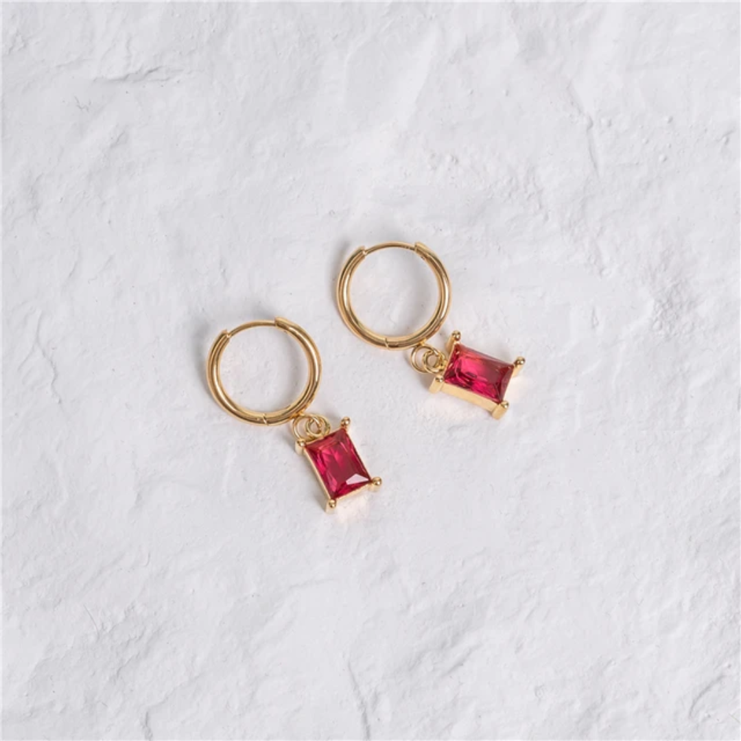 18K Gold Plated Cubic Zirconia Emerald Drop Hoop Earrings